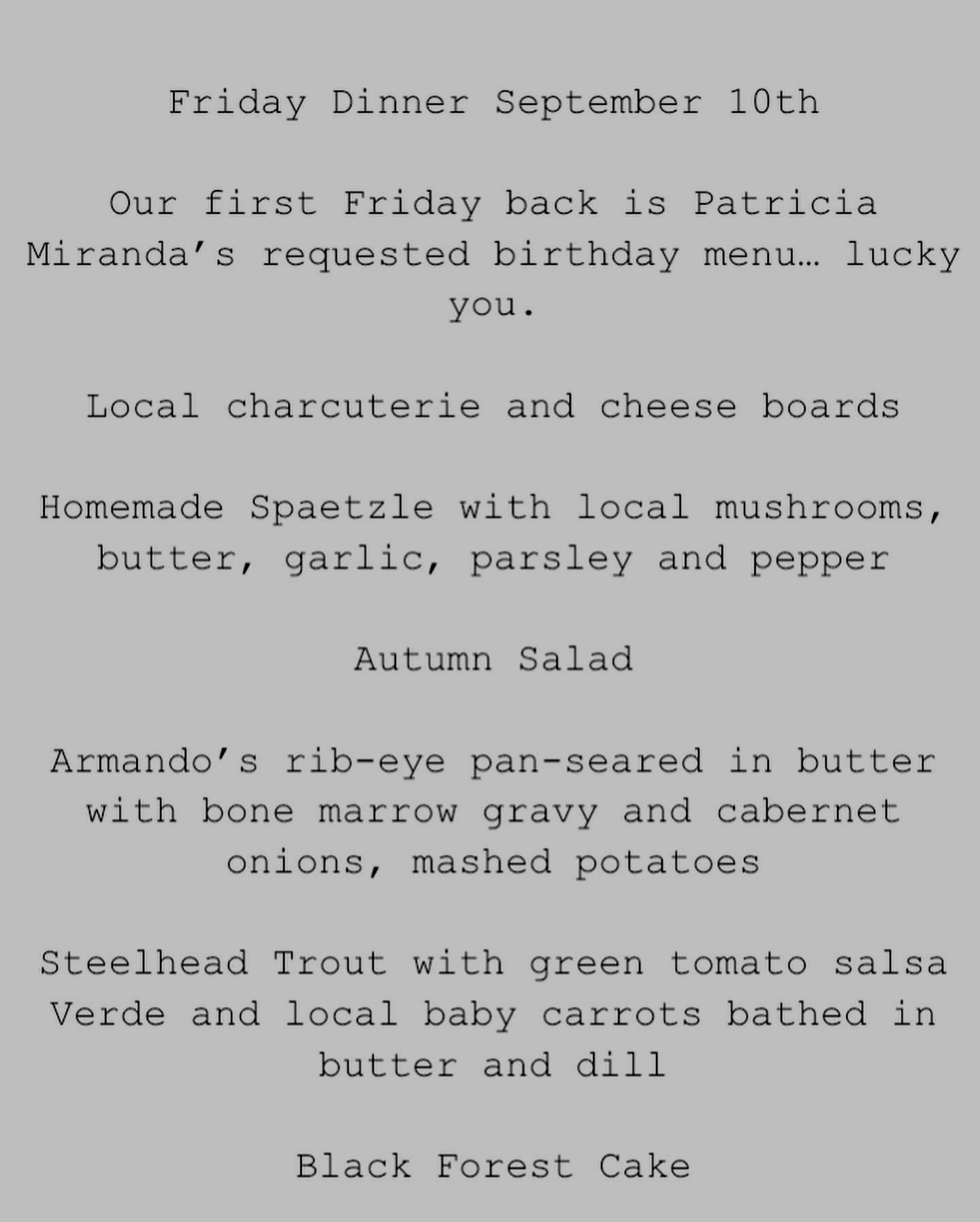 Noticed the heritage building with the inviting sign out front by accident during the summer when I was on Main Street. Unfortunately the restaurant was closed at the time. A few of the surrounding business owners who were sitting out front raved about the regular lunches that are served only by RSVP and then received at the takeout window. Elizabeth; the owner and chef, used to reside at what is now the restaurant, specializing in lunch and brunch menu. I called to make a reservation and was told they were opening for dinner (and would continue to on occasion for private parties) starting September 10th. Voilà! Went with my friend Janice on a lovely evening where we sat outside. The inside is very tiny with only a few tables that were already reserved. Lucky for us the weather cooperated. The food is local, sustainable, creative, comfort food. Of course I had to check it out.