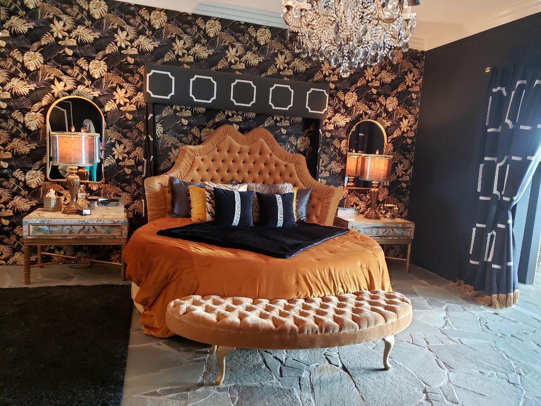 Master Bedroom with custom made round bed.View from master bedroom bathtub