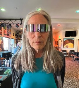 Which brings me to my recent meeting with former Warhol muse and cult star Mary Woronov. It was at the closing reception of her art series “the mystery of the red shoe” and a movie she starred in called “Rock ‘n Roll High School,” at the Palm Springs Cultural Center last Saturday night – the closing night of a MARY WORONOV MEGASPECTIVE presented by The Ebersole Hughes Company – the same documentarian duo who did “House of Cardin,” “My Name is Lopez,” “Mansfield 66/67,” “Dear Mom, Love Cher,” and others. I’m a huge fan of their work.