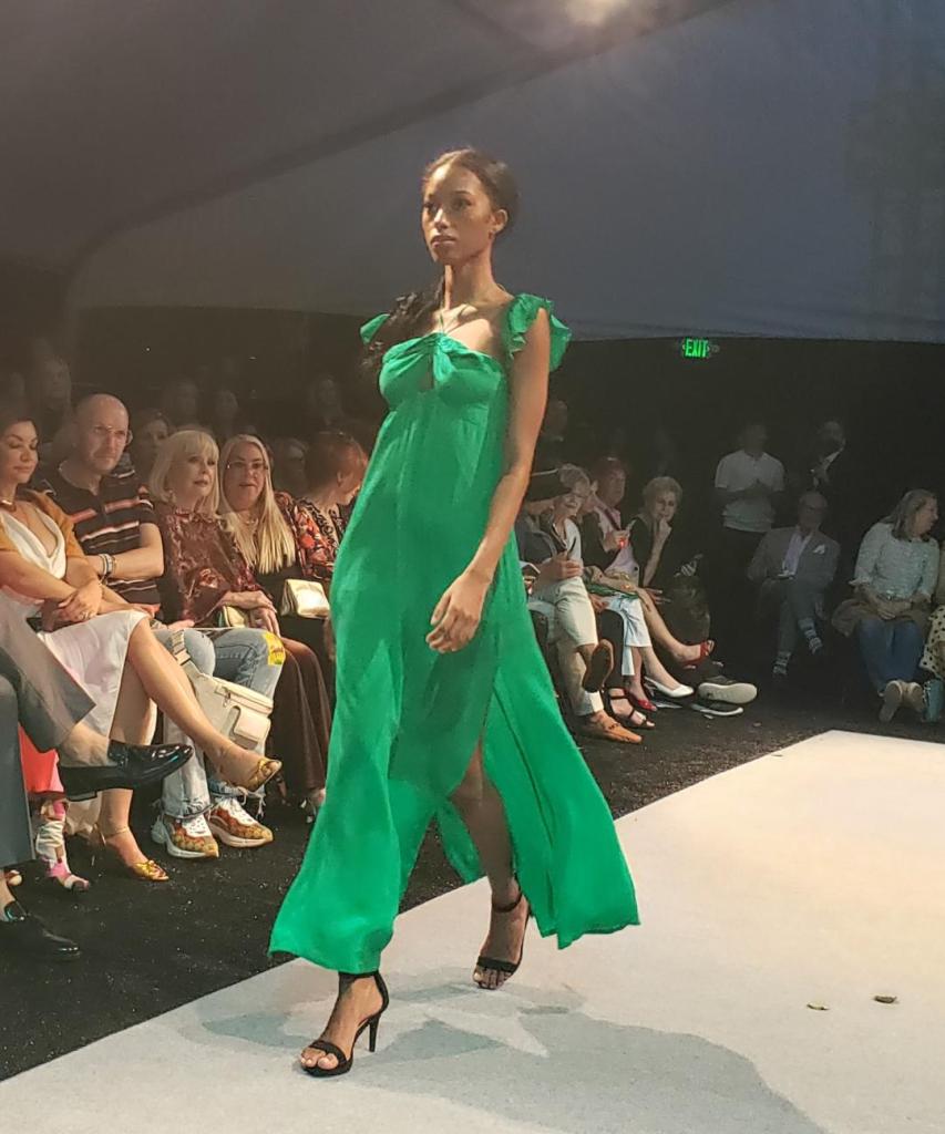 Kelly Green ruled the runways in New York, London and Fashion Week on El Paseo in Palm Desert, where these photos were taken. The rich color is a bold departure from the LBD.