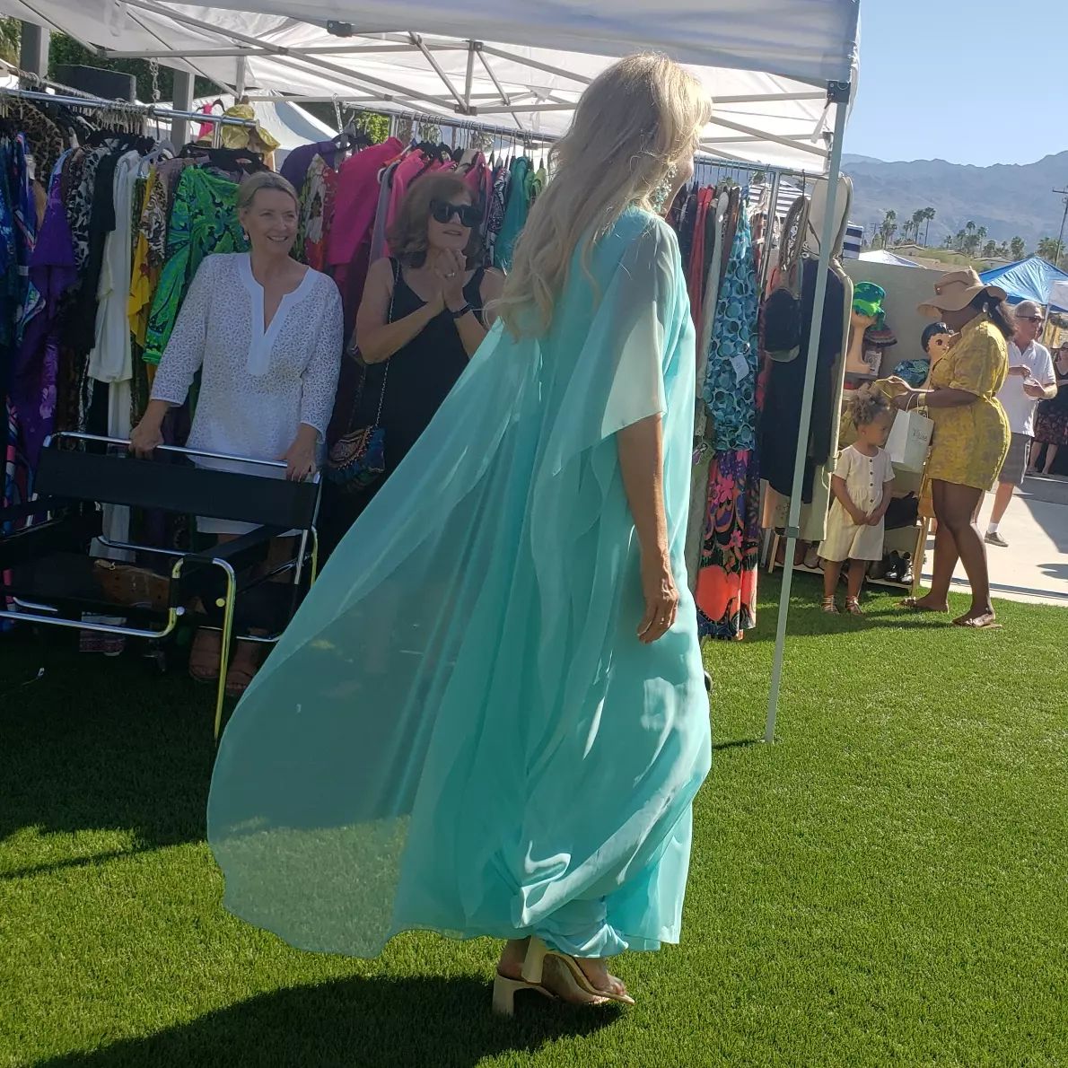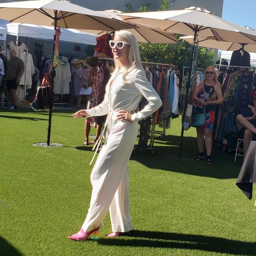 On Saturday, March 26th, two women I know put together the first high-end vintage collective sale and informal fashion show in Palm Desert. It was held outdoors at Image Galleries on a very hot day…but that didn’t interfere with attendance and an overall good time with an amazing vintage selection. Not to mention the art gallery…where art and fashion intermingle. I mean what can be better than that?