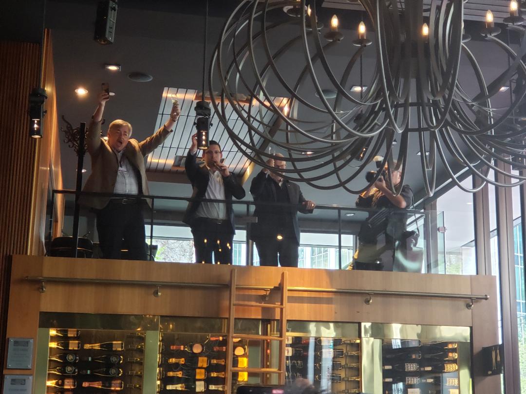 2022 countdown presented by VIWF Executive Director Harry Hertscheg (L), Bard on the Beach Artistic Director Christopher Gaze (R) and Group Sommelier Jason Yamasaki (middle).