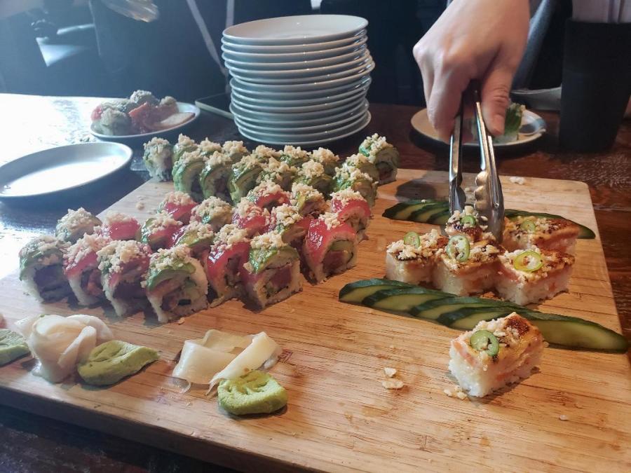 Outside JOEY (Bentall One) at launch party.