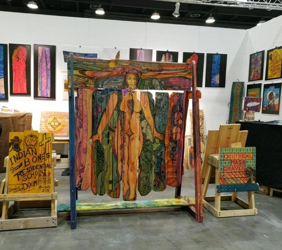 Sky Lilah and her wonderful collages and sparkly dress.James Darin Corbiere Waabshki Makwa (White Bear) – Cowichan Bay, B.C. Bones & the Residential School of Doom.
