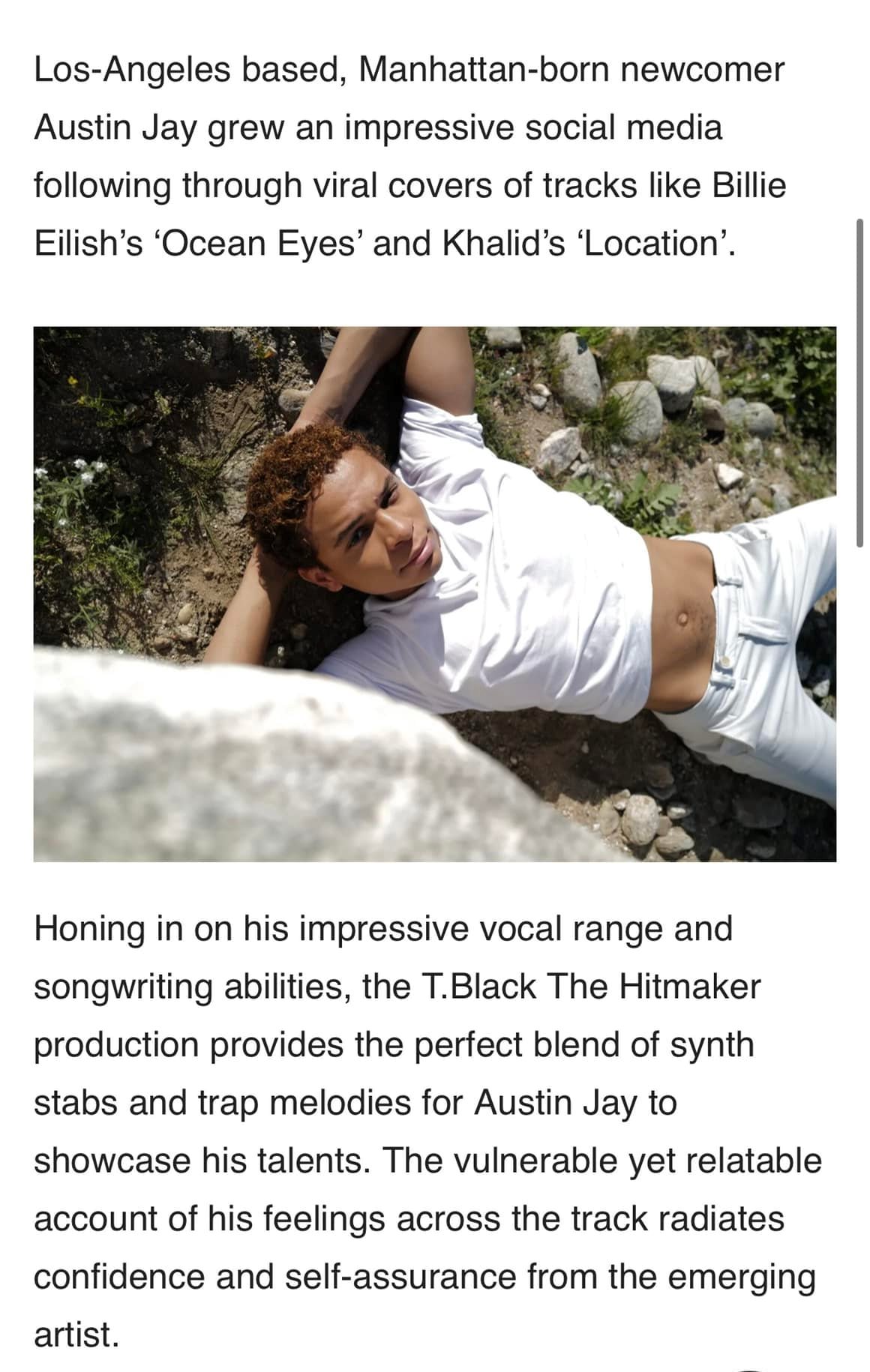 His song “All I Wanna Do” is taking off on Spotify. After 3 1/2 weeks, it has over 30,000 streams! There are 17,000 monthly listeners and thousands of followers with almost the same numbers as the top recording artists Lizzo and Justin Bieber’s monthly stats. Austin has also debuted on the public playlist Top 50 in the UK, was featured in Crowns – the industry Music Magazine (see below).