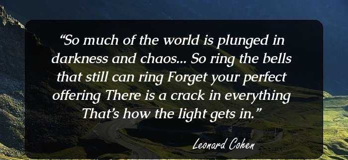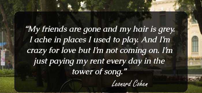 A few of my personal favourite lines by Leonard Cohen:the one below is more profound these days…If you read into it, it can speak to the major differences that have torn people apart in relation to the pandemic and politics. So silly. But let’s end this on a more positive note…