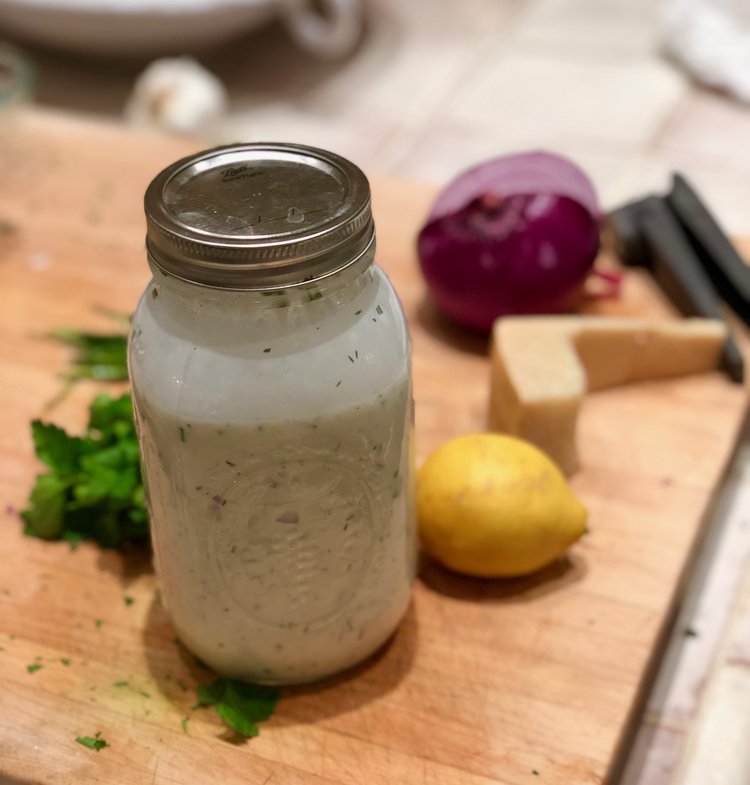 2 cups buttermilk ½ cup *mayo ½ cup freshly grated Parmigiano Reggiano 2 tablespoons freshly chopped chives 2 tablespoons freshly chopped dill 2 tablespoons freshly chopped Italian parsley 3 tablespoons lemon juice 2 tablespoons finely chopped red onion 1 clove minced garlic ½ teaspoon sea salt Freshly ground black pepper 1 teaspoon **dried mustard