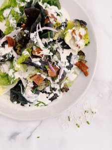 I love using fresh herbs. I think that’s the main reason I tried for the first time a homemade ranch dressing. I had nice fresh chives, dill (from someone’s garden) and Italian parsley. Funnily enough, ranch is not one of my favourites but this one is delicious and share worthy. This fancier style ranch recipe got my attention. It comes courtesy of Caroline Somers who I follow on Instagram. Her website is called emptynestersfly.com and there’s a variety of good looking recipes over there.