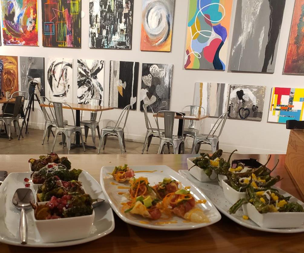 Luckily for us, her nephew Alfredo Casuso, (he curated this event) unveiled it on Wednesday at Grand Central restaurant in Palm Springs. This along with wine bar, generous food sampling from their latest tasting menu and other thought-provoking works by local artists Georgeanne Papac and Gary Paterson.