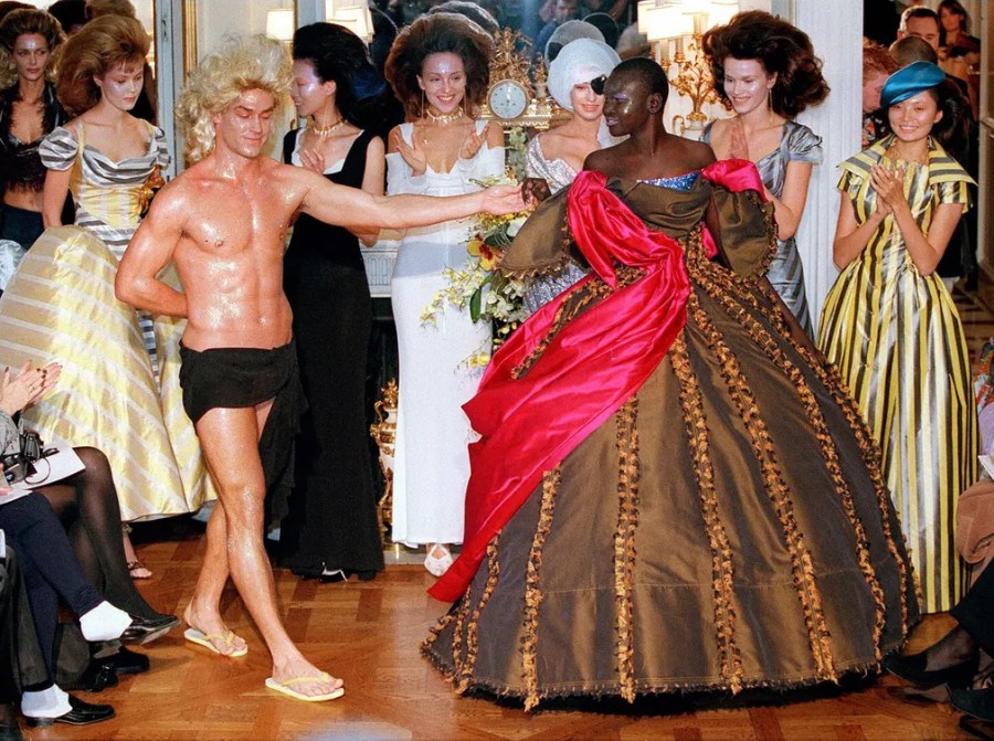 Taken from “The Guardian” – No fashion designer ever had a Paris show like the one staged by Vivienne Westwood in 1991. Although she was by then 50 and had been making clothes for sale for 20 years – and the British Fashion Council had named her designer of the year – she stitched much of that collection on her own sewing machine in her shabby south London flat, hand-finishing it in the van that transported her, and the models, to France, where the couturier Azzedine Alaïa had invited her to guest-show. Despite those limitations, the collection was a major success.