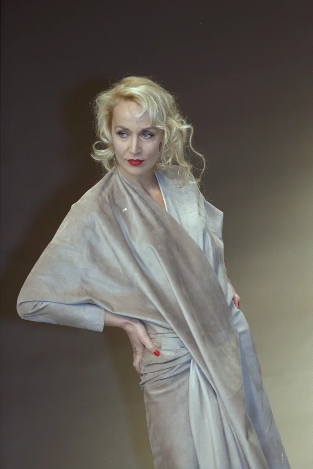 Autumn Winter 2000/01 Jerry Hall in a ready-to-wear gown. Photograph: Pierre Vauthey/Sygma/Getty Images