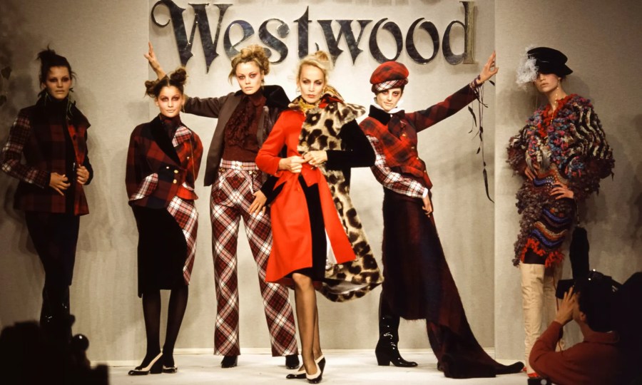 Autumn/winter 1992-93, Paris. In 1993 Vivienne produced her own tartan and invented her own clan, MacAndreas, for the Anglomania collection. The Lochcarron of Scotland officially recognised the clan, a process that normally takes 200 years. Photograph: WWD/Penske Media/Getty Images