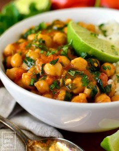When the chickpea curry is thickened but not boiled down all the way you can add the lemon juice. You put it in last because the lemon juice should not over cook. It’s to add flavour.