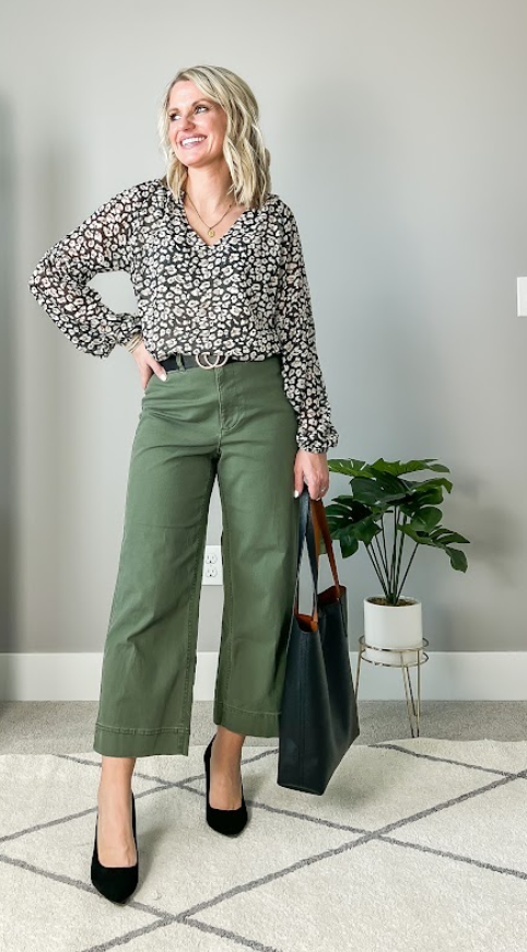 Add personality to your outfit with a printed blouse, neutral trousers, or pencil skirt. Use bold patterns to make a bold statement and understated bottoms to create balance. Finish with pointed-toe flats or heels and a structured bag to complete the sophisticated look.