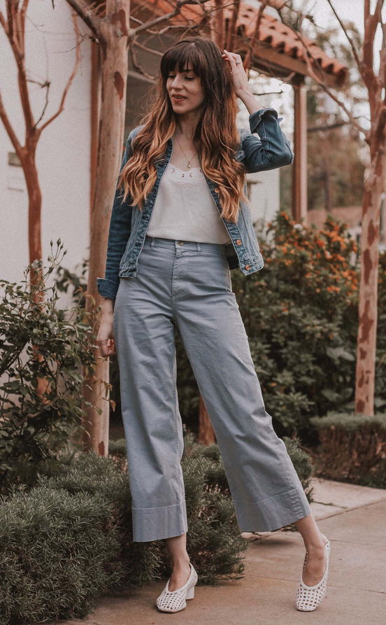 This combination gives a rather flattering silhouette that is comfortable and chic. Take high-waisted trousers in neutral or bold colors and pair them up with a fitted crop top and a denim jacket. For a final touch, define the waist with a belt.