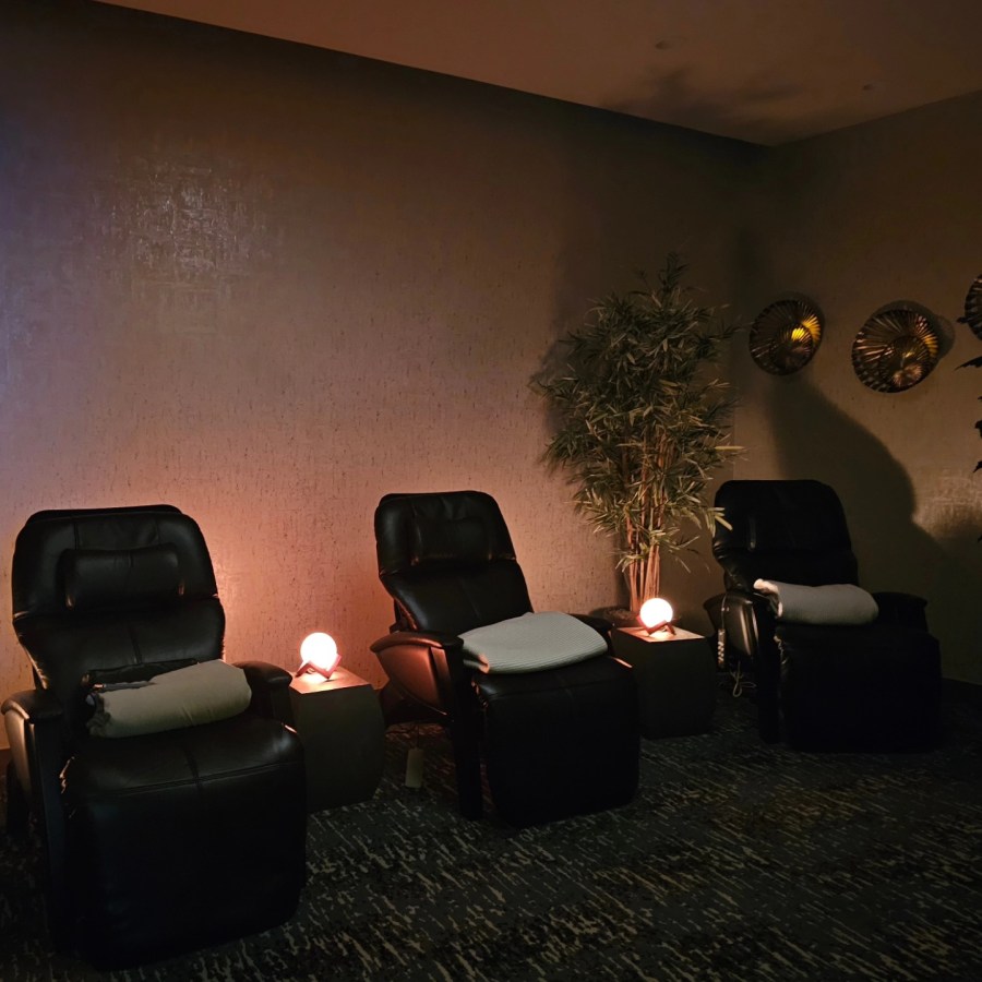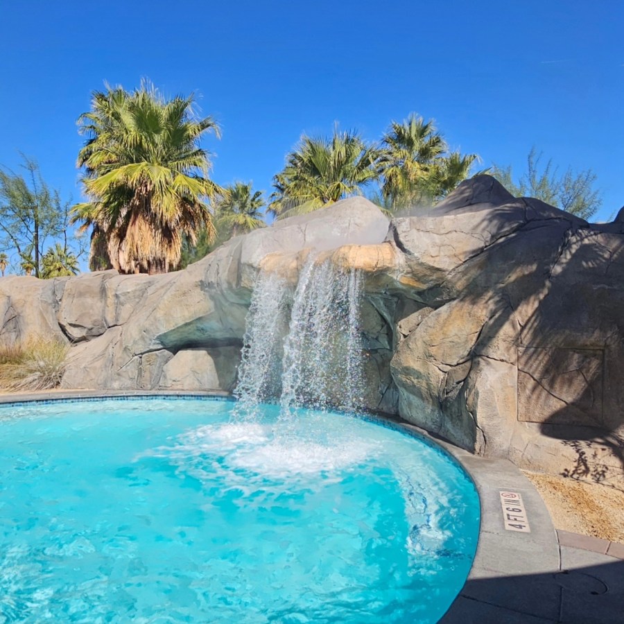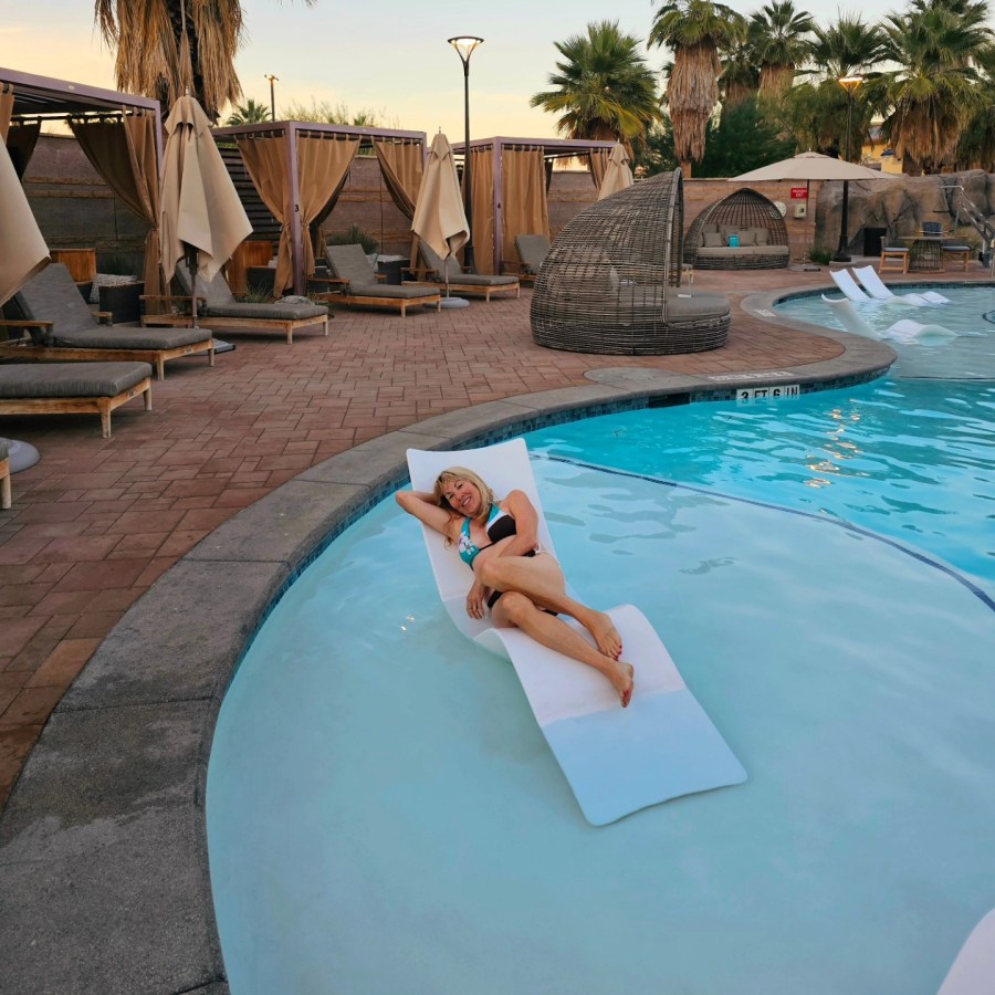 Last month I met a friend from my past who was visiting another friend here in Palm Springs. We had a spa day like no other we’ve ever had before. At a genuine day spa – because you need at least one full day to enjoy the various mineral pools, jacuzzi’s, halotherapy salt caves, grounding room, eucalyptus steam room, acoustic wellness lounge, fitness room (if you so choose to work out – we did not) and food from health-forward on-site Málmal Café.I arrived there at 10:00 am – left at 6:00 pm – almost closing time. My personal treatment – an aromatic 90-minute powerful warm quartz scrub/massage which felt like lying on a bed of heated desert sands. I lay on a zero-gravity bed that had crushed quartz stones underneath and a massage roller. At some point there was an infrared-light dome that went over my body as I lay on my back while getting a neck/scalp massage. The best!