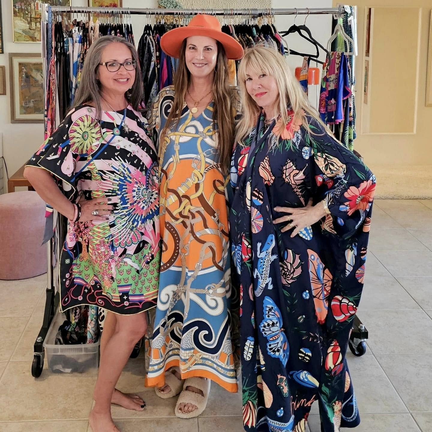 My dear friend Rosa came to visit from Vancouver.At V Wine Lounge with Chocolate PepperMint-inis.With Candy + Sherri (in middle) at Sherri’s “California Caftans” home sale. She sells the most beautiful 100% silk caftans +kimonos. https://sherijohnson.com/