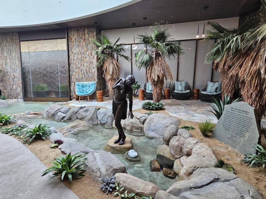 Séc-he is one of the most important cultural resources cared for and protected by the Agua Caliente Band of Cahuilla Indians. Located in the heart of downtown Palm Springs, Séc-he (“the sound of boiling water”) is an ancient hot mineral spring that is remarkable in both form and function. Here, rainwater and mountain snow melt naturally, collect underground and emerge from the ground at a rate of 26 gallons per minute.