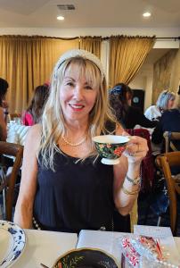 With Kathy at Willie’s Modern Fare in Rancho Mirage for high tea at”Girls Wear Your Pearls” – International Wear Your Pearls Day. An arrangement by our mutual friend Candy. https://www.williesrm.com/