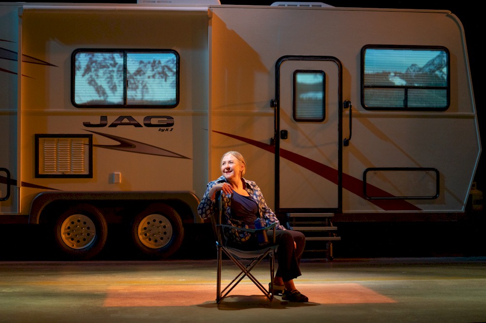 It resonated with me in the sense that it made me think about the difference between attachment and connection. The main character’s name is Dorothy (played by Susinn McFarlen). Dorothy’s story is based on the playwright’s mother’s life. After losing her husband, she decides to take their RV on the road trip of his retirement dreams: she’s going to Burning Man. After all, it’s only a 21-hour drive to a weeklong culture festival and party with no plumbing in the middle of a desert—how hard can it be? Burning Mom is a stirring odyssey of self-discovery and tale of how art, everlasting roads, and human connection propel her along the way. McFarlen did a wonderful job of entertaining us with stories for over two hours, with one set/costume change after a short intermission.