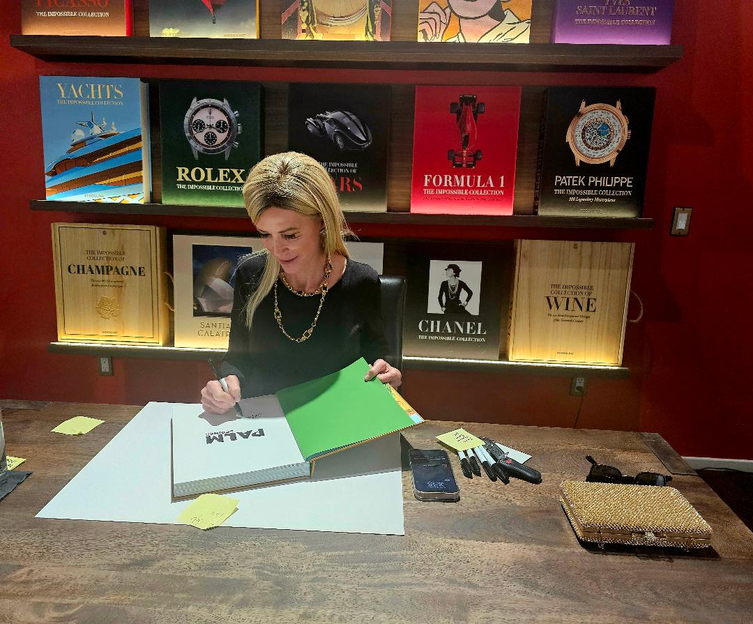 And I love that the models + musicians walk around the tables.Sheila Hamilton (five-time Emmy Award–winning journalist and author) signing my “PALM SPRINGS” by Assouline hardcover book at “Just Fabulous.” The book is absolutely stunning, as one would only expect from this luxury lifestyle company that produces exceptionally crafted books.