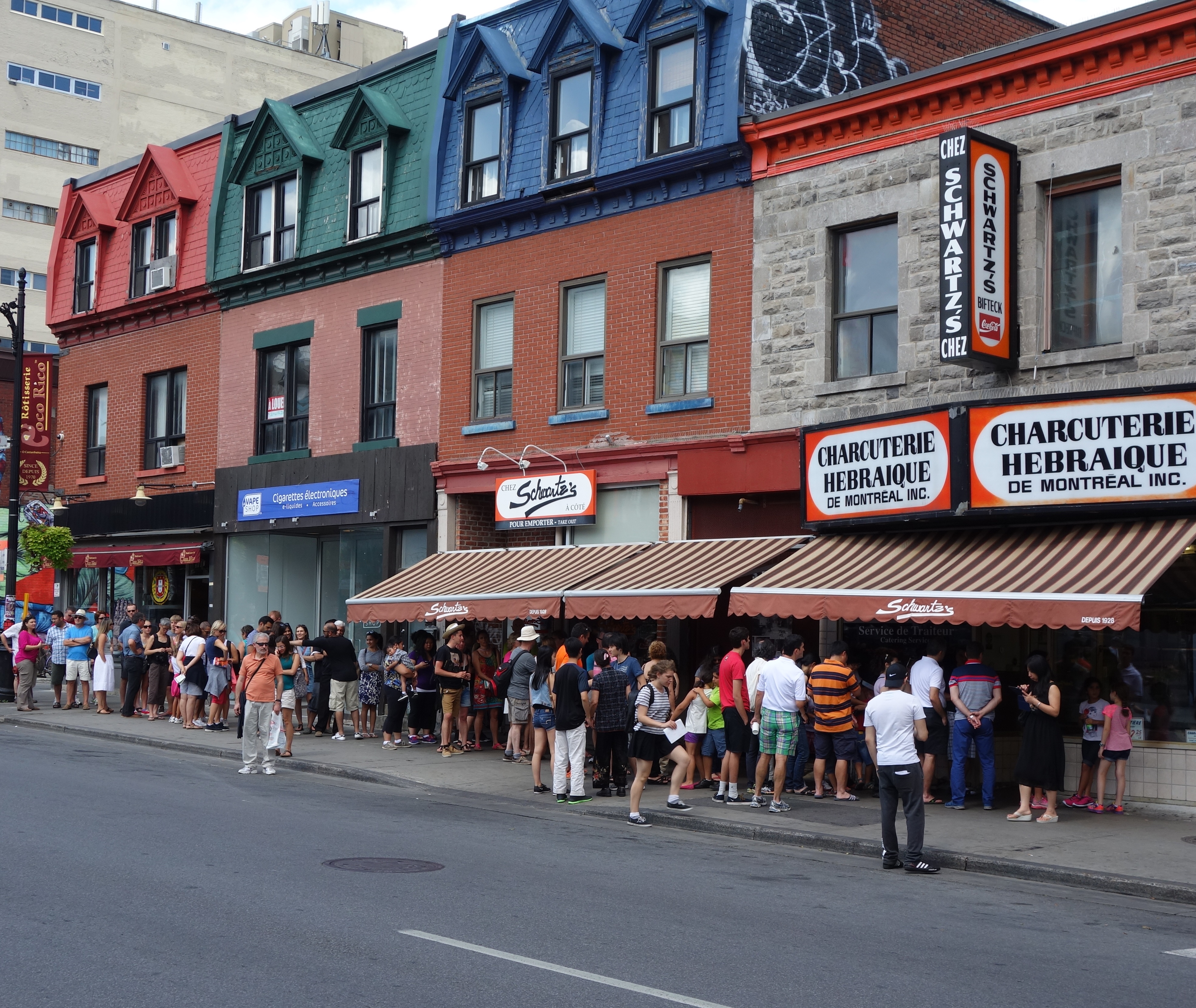 For smoked meat sandwiches Schwartz’s still remains everyone’s favourite and a true Montreal classic. Located on Blvd Saint-Laurent, when you walk through those doors you take a step back 95 years. You have to lineup outside no matter who you are and wait your turn. You never know who you’re going to sit with too as they sit you wherever there’s space – everyone gets treated the same. You can rub elbows with politicians, movie stars (Elizabeth Taylor was one) to the local poet and blue collar workers. You won’t find better smoked meat anywhere else. My dad knew all the owners (family run and passed down the line) and we’d always order a slightly fatty sandwich with a black cherry cola and side of sour pickles while my mom preferred rib-eye steak. At this time Moishe’s #1 steakhouse was located right above, but she’d order the one from Schwartz’s.