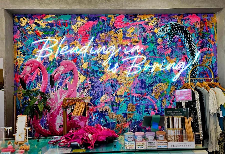 The grounds here are very picturesque as you step into the trademark Tommy Bahama Island lifestyle featuring huge palm tree prints and colourful casual wear with the true essence of relaxation. The boutique reflects the brand perfectly. The restaurant “Grapefruit Basil” is inspired by local, on-property ingredients. We had a sampling after our spa session and everything was excellent. We thought the guac was the best ever.