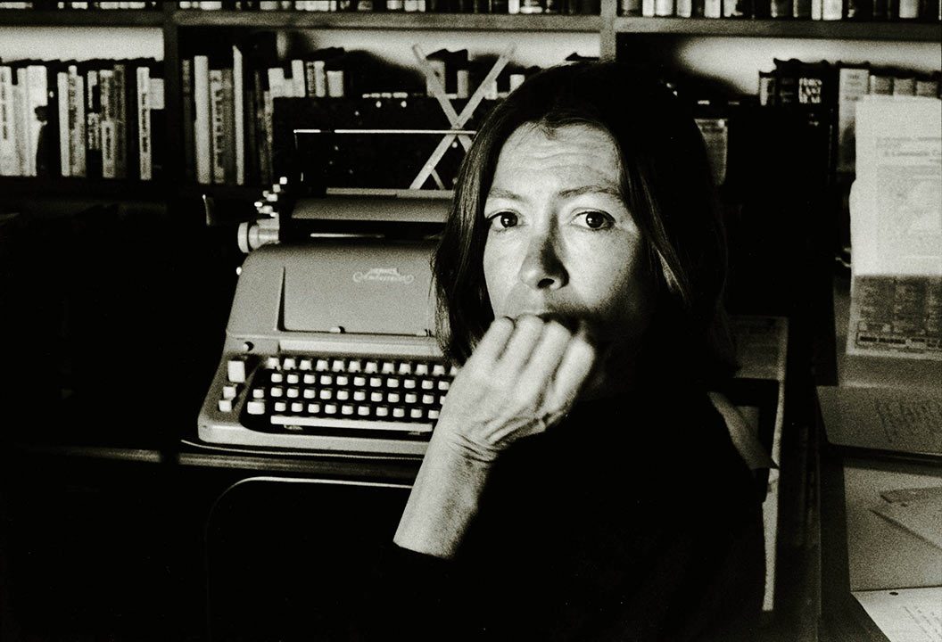 Joan Didion with her typewriter in Brentwood, 1988 (Photograph: Nancy Ellison)