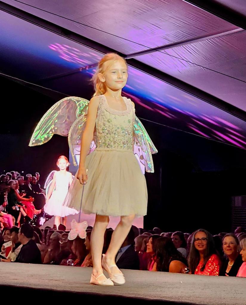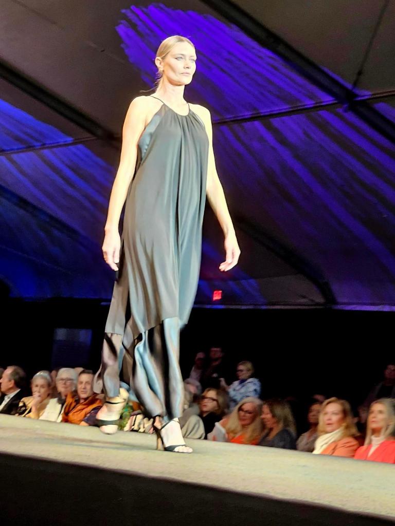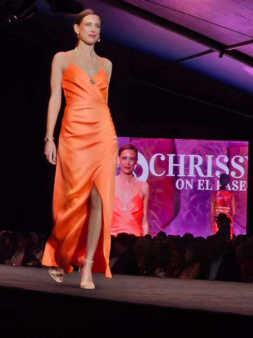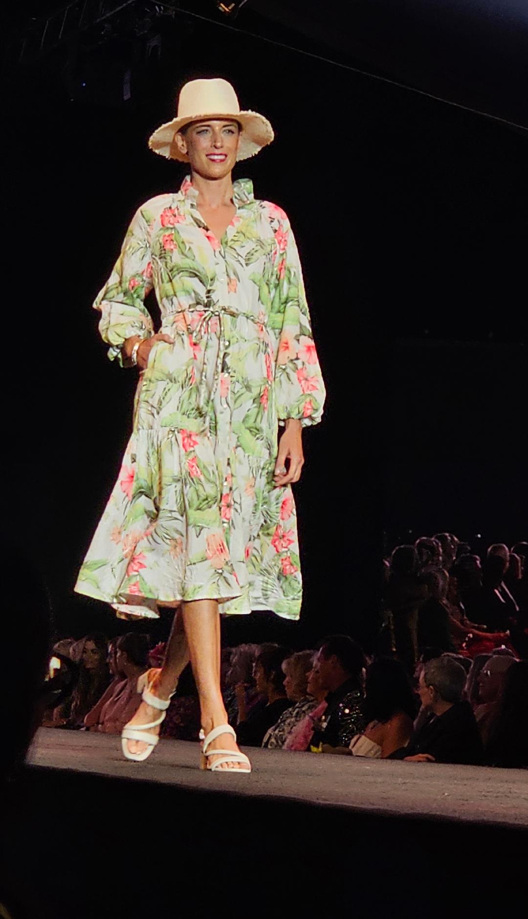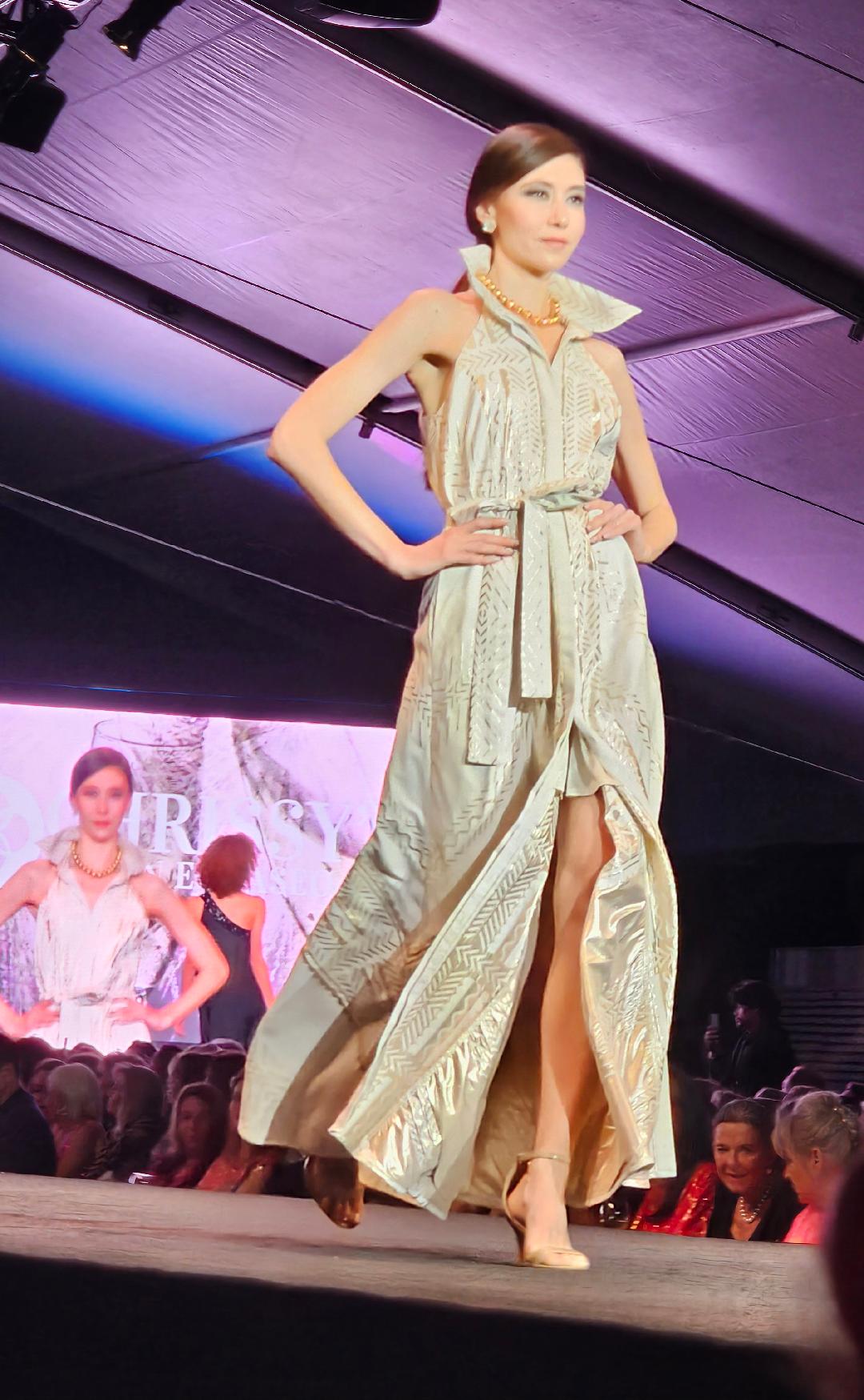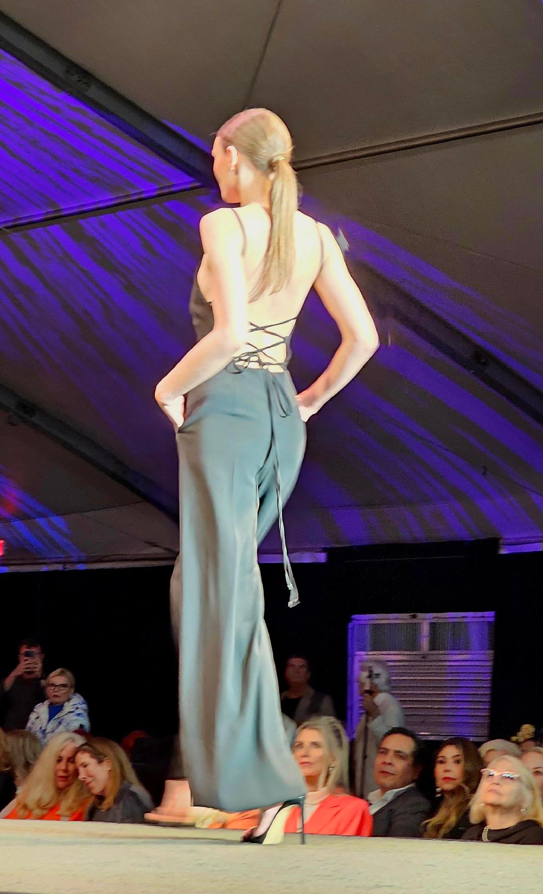 Fashion Week El Paseo, Palm Springs: In contrast, the Palm Springs show celebrated Cardin’s legacy with a mix of archival Héritage pieces and the Spring 2025 collection. The event had a more nostalgic and community-focused vibe, benefiting local non profits like Shay’s Warriors. It included a special collection, Caftanes Galore of Mérida, crafted from vintage Pierre Cardin scarves, blending retro and modern styles. The desert setting added a unique charm, with models showcasing vibrant, flowy designs under the white tent. Jewelry by Stephanie Lake. Benefiting Shay’s Warriors – Life After Cancer.