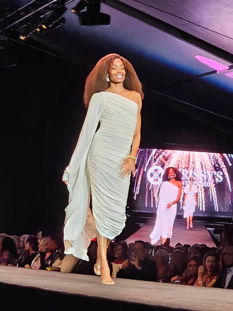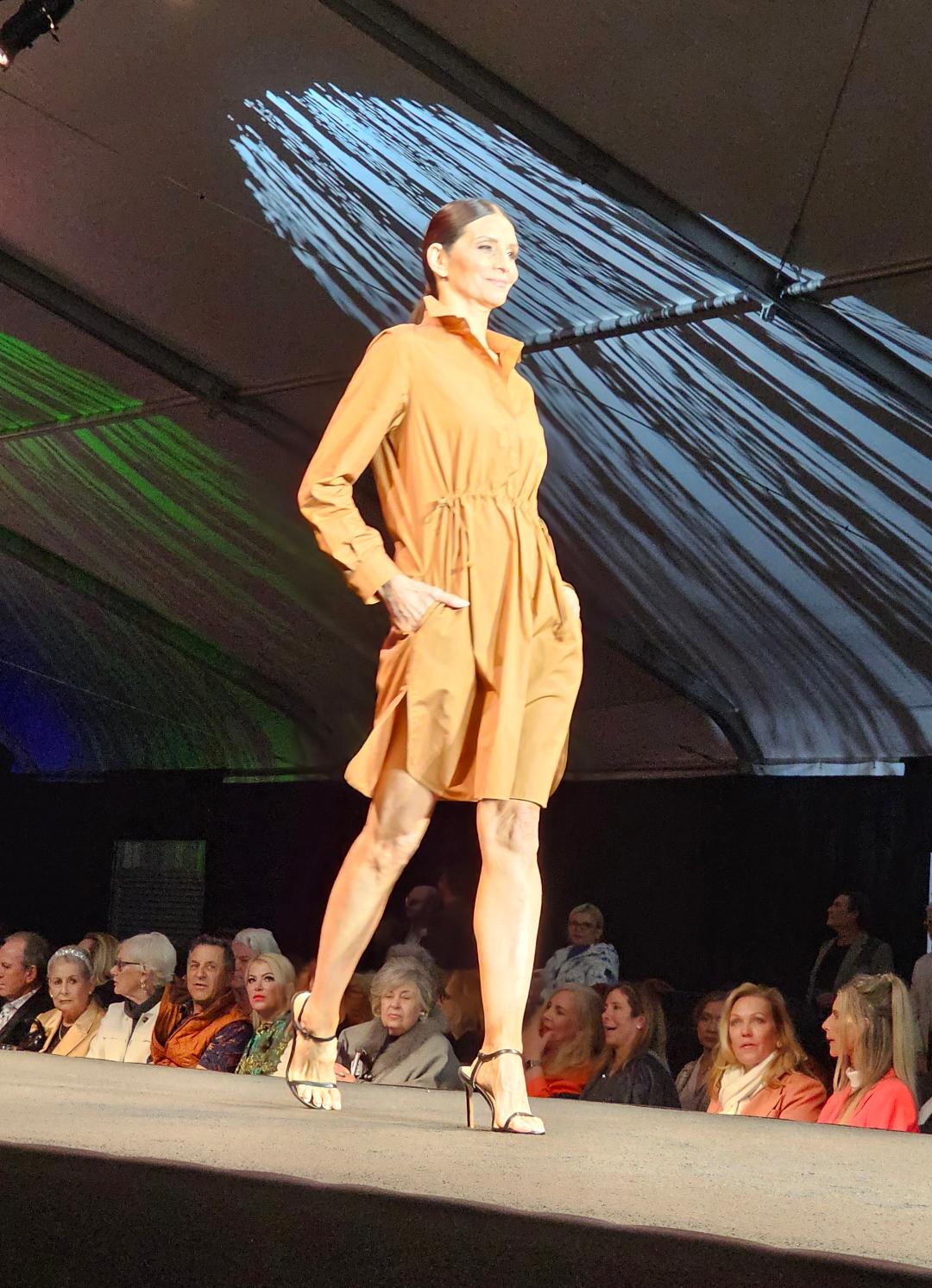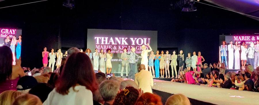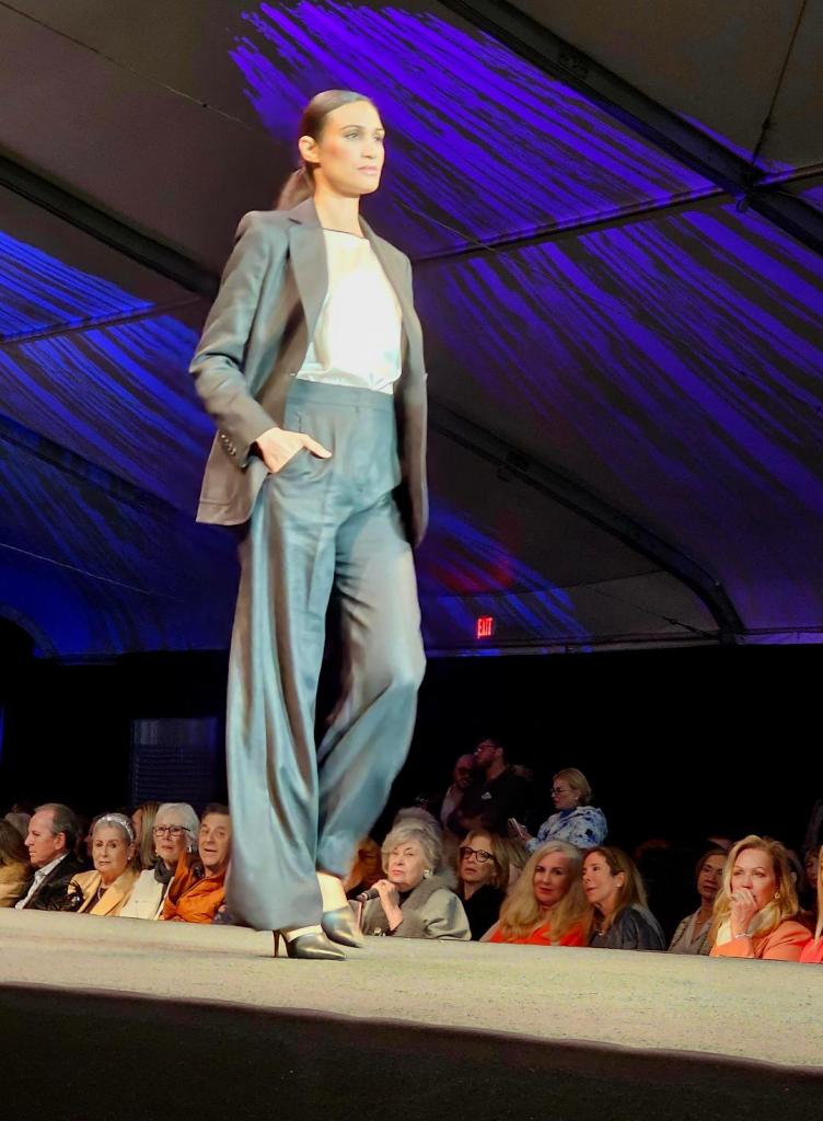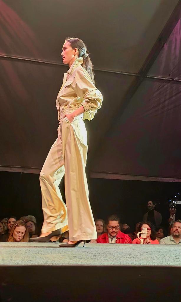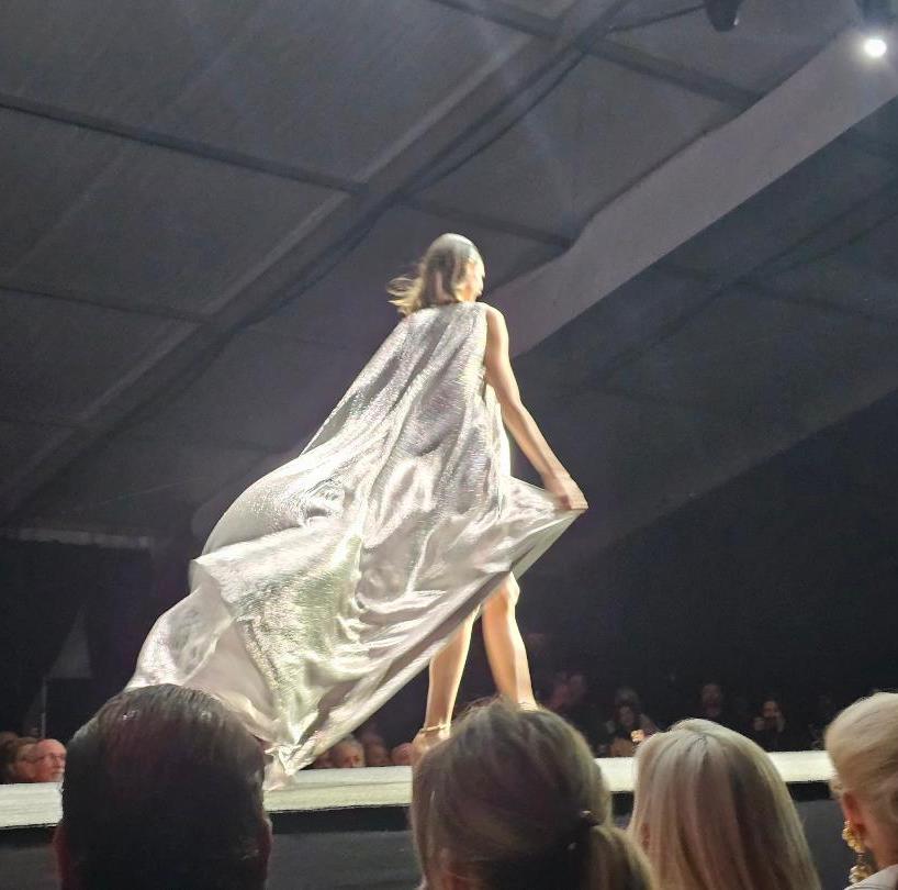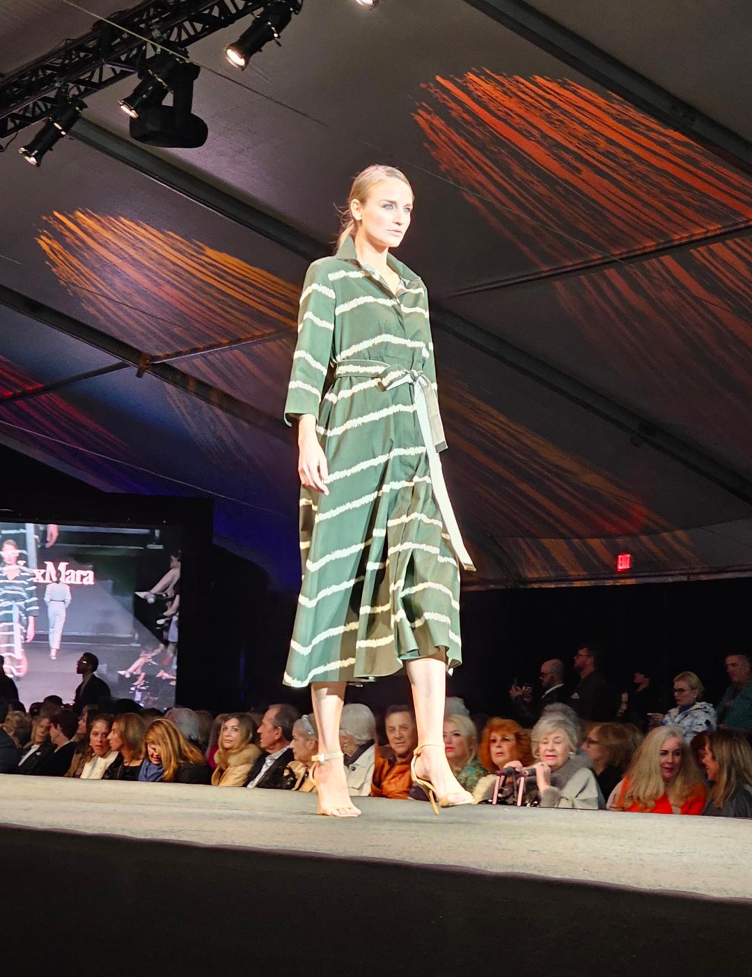 Fashion Week El Paseo, Palm Springs: In contrast, the Palm Springs show celebrated Cardin’s legacy with a mix of archival Héritage pieces and the Spring 2025 collection. The event had a more nostalgic and community-focused vibe, benefiting local non profits like Shay’s Warriors. It included a special collection, Caftanes Galore of Mérida, crafted from vintage Pierre Cardin scarves, blending retro and modern styles. The desert setting added a unique charm, with models showcasing vibrant, flowy designs under the white tent. Jewelry by Stephanie Lake. Benefiting Shay’s Warriors – Life After Cancer.