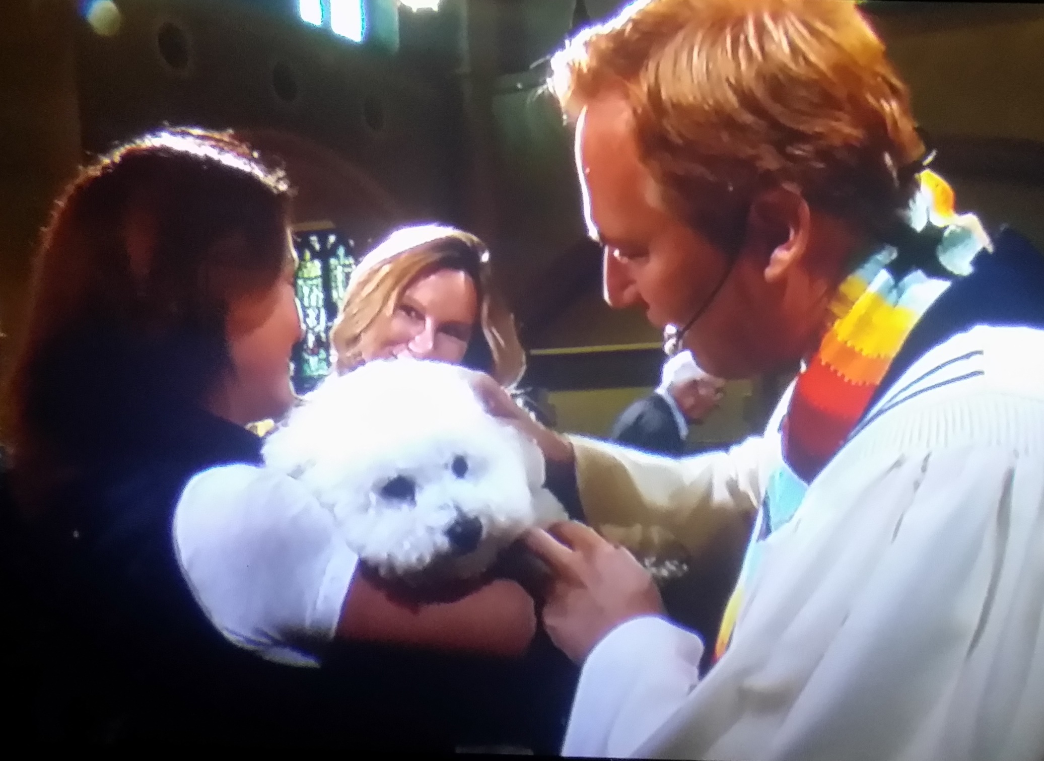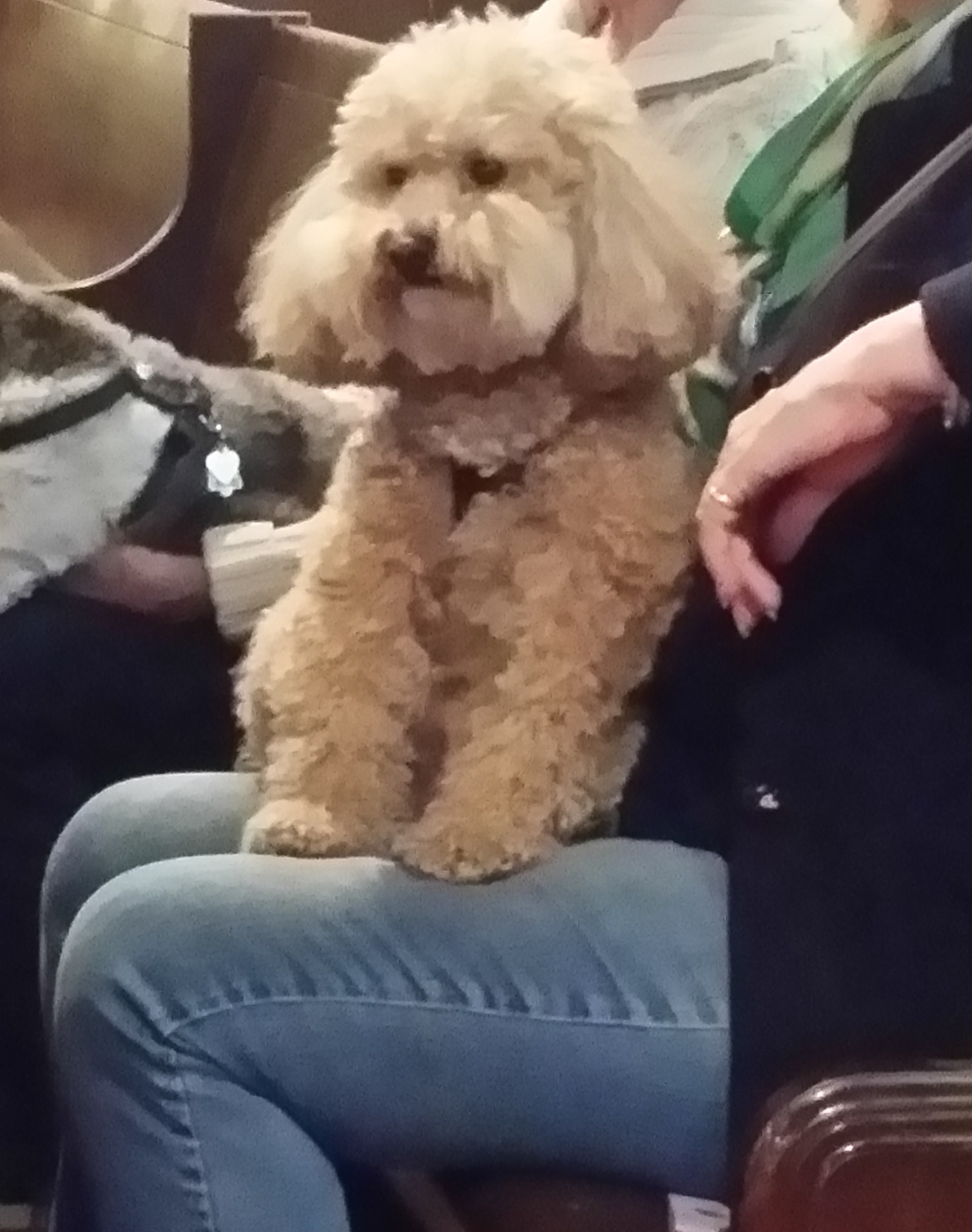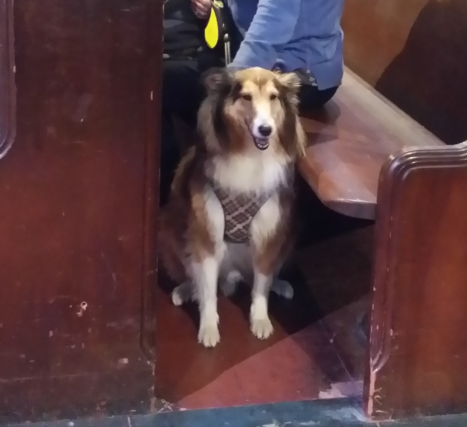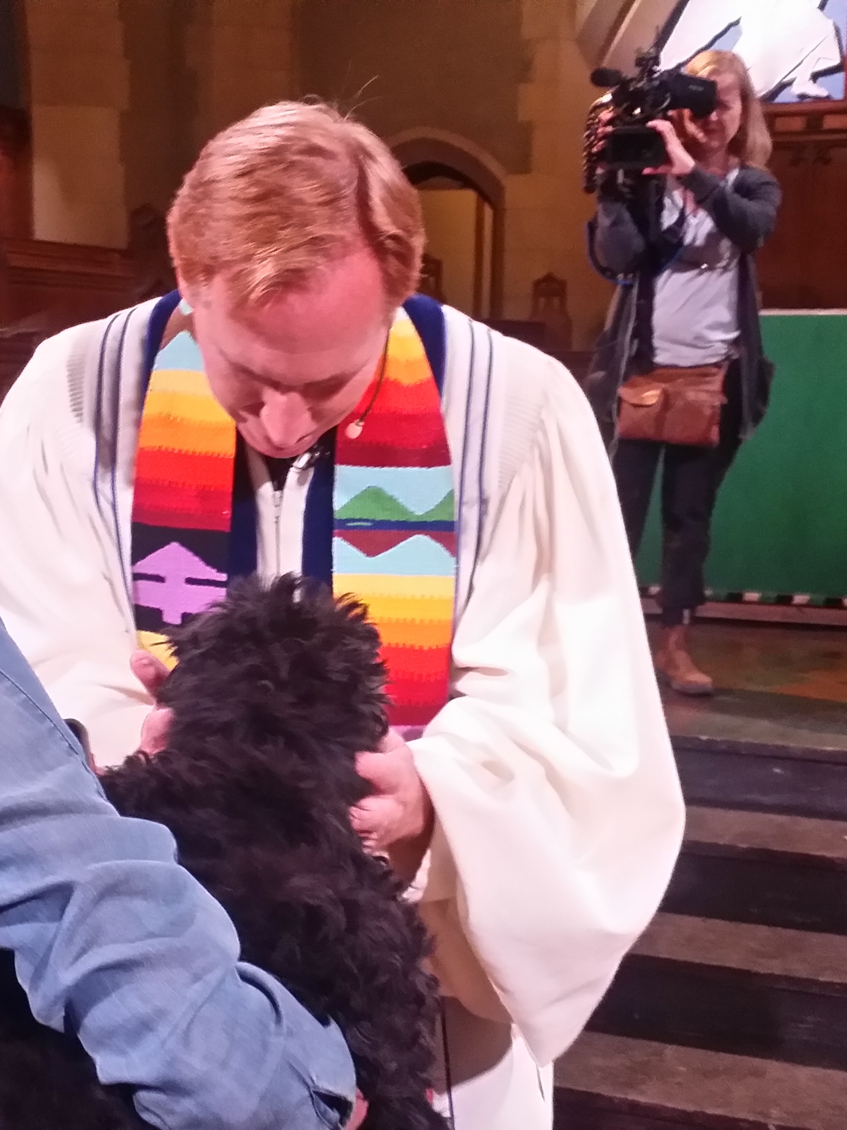 I took my dog to church today for “blessing the animals.” He enjoyed the outing but I don’t think he’ll be begging to go back. People brought their dogs, a cat and someone brought a stuffed chicken.