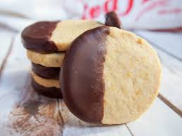 This one is a Martha Stewart original. The only thing I’ve changed is instead of using granulated sugar I’ve substituted with organic cane sugar. They’re really yummy. My added touches: some are cut out round and sprinkled with chili cocoa powder instead of powdered sugar. Or; should you decide to melt chocolate, you can dip half the cookies in the chocolate, as shown.