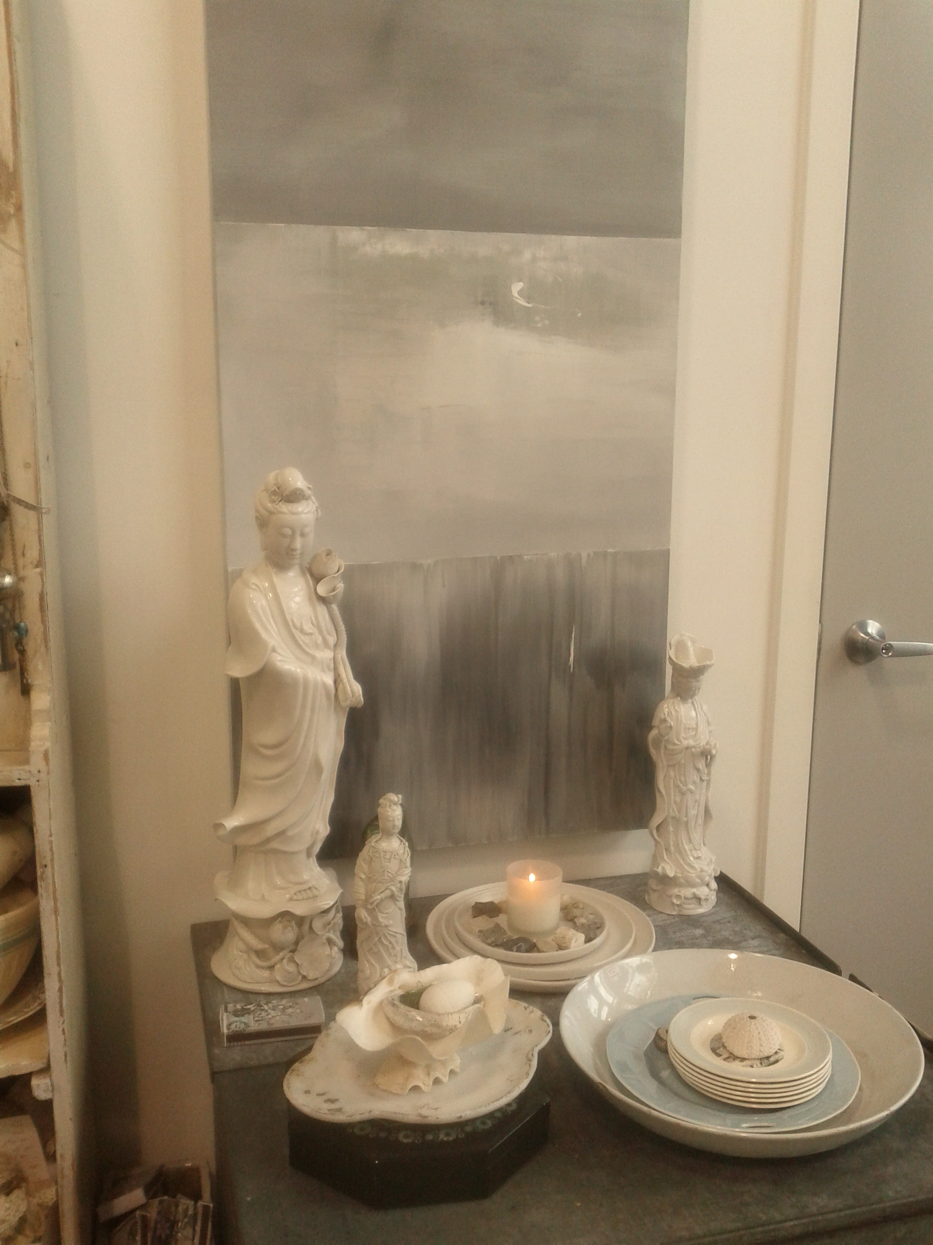 In her inviting space she creates a compelling mix of new and old. Lush pillows, antique textiles and unique finds from the flea markets of Europe mingle with contemporary ceramics, fresh décor & endearing gifts. Her clientele will discover art in her paintings and photos which grace the walls in an inviting atmosphere.
