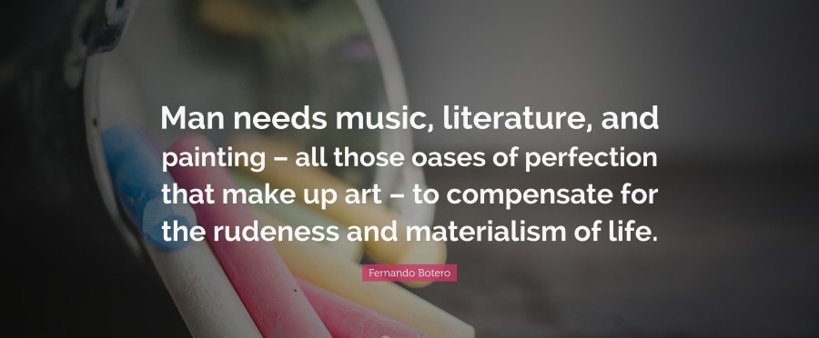 For instance, Botero did a series of paintings of a young boy – boy is sitting atop a wooden horse, dressed up as an officer. We learn the young boy was Botero’s son, struck by a truck early on in life and died instantly. This was Botero’s way of honouring his boy. For a long while the young boy is all he painted. It must have been torturous for him to do so. But we look at the painting not knowing the story behind it and feel what we feel .