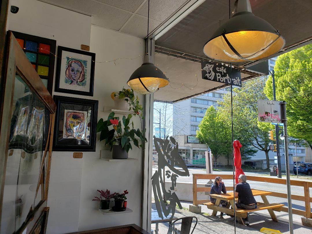 An establishment like Café Portrait in Vancouver’s West End is so much more than just a place to grab a coffee or croissant. Sidenote: the pistachio croissant is the best I’ve tried. It’s also a breakfast/brunch spot and an art gallery unlike any other. The entire café is filled with original portraits on the walls, tables…even in a corner with hoodies and coffee cups available for purchase.