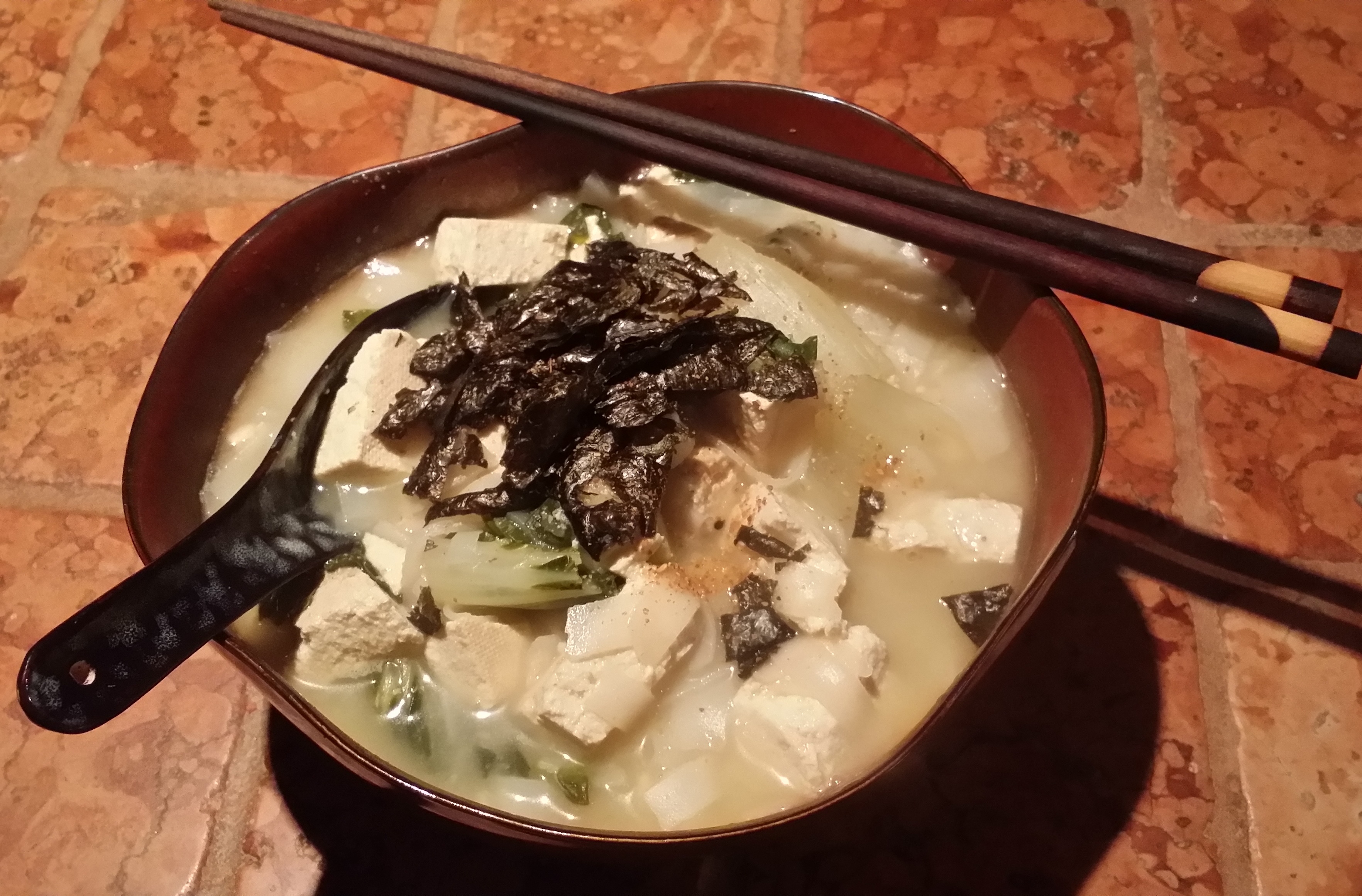 I use nori as a topper in a homemade miso soup base. I start with a soybean paste that is GMO free (getting non-GMO is harder to find these days but if you look hard you’ll find it). Sometimes added chicken stock and then add vegetables (baby bok choy, spinach, broccoli, a little soy, rice noodles, shichimi spice and toasted seaweed. It is fairly quick, nutritious and delicious. It sure beats the miso soups you get at any Japanese restaurant.