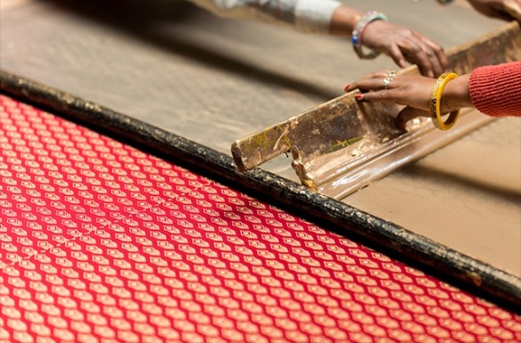 The Zoe Report x Symbology scarf was handcrafted by ten women in the desert region of the Indian Village of Sanganer, where bright sun and dry heat create the ideal conditions for printing. In this region virtually all printing is ordinarily done by men but these women were trained specifically to create this scarf for those who ordered the Spring 2017 box of style. The peacock feather design symbolizes integrity and beauty, while the deep berry and gold hues emulate Indian bridal saris.