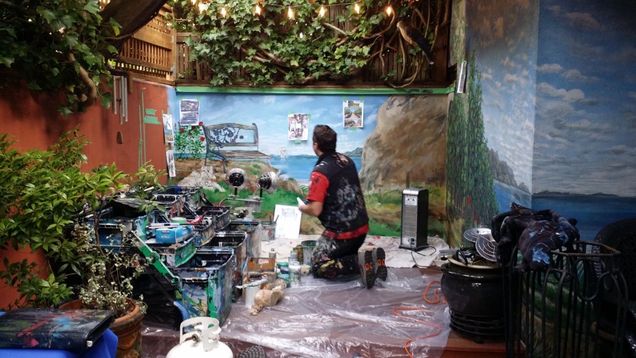 I wanted the older mural to be extended around the corner and a few other things added to the much smaller blank wall area; which would have not been in the original plan.