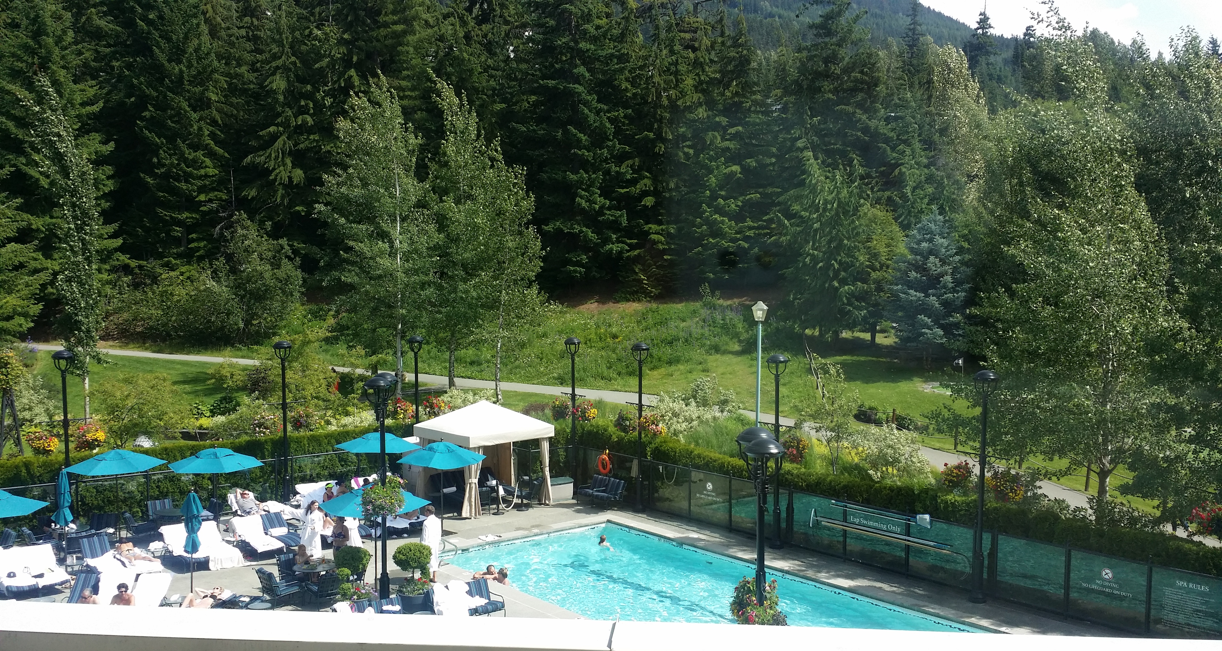Jacks waiting locationOff to bed – too much excitement for one dayView of the Scandinave Spa, Whistler from the inside. No photos allowed outside.