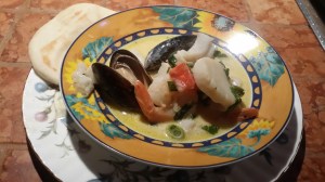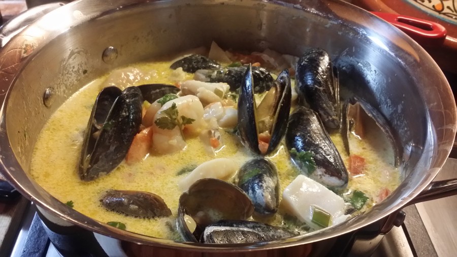 We were craving seafood and I hadn’t made this in a very long time. It’s quite simple as everything is made in one pot. You can alter the seafood depending on what you like as it’s adaptable as long as you’re using a variety of fresh seafood. I have to admit the mussels make a huge difference for added flavour & appearance. Originally I followed a popular recipe from an Indo-American Bistro, but as per usual I changed it and did it my way and it turned out perfect.