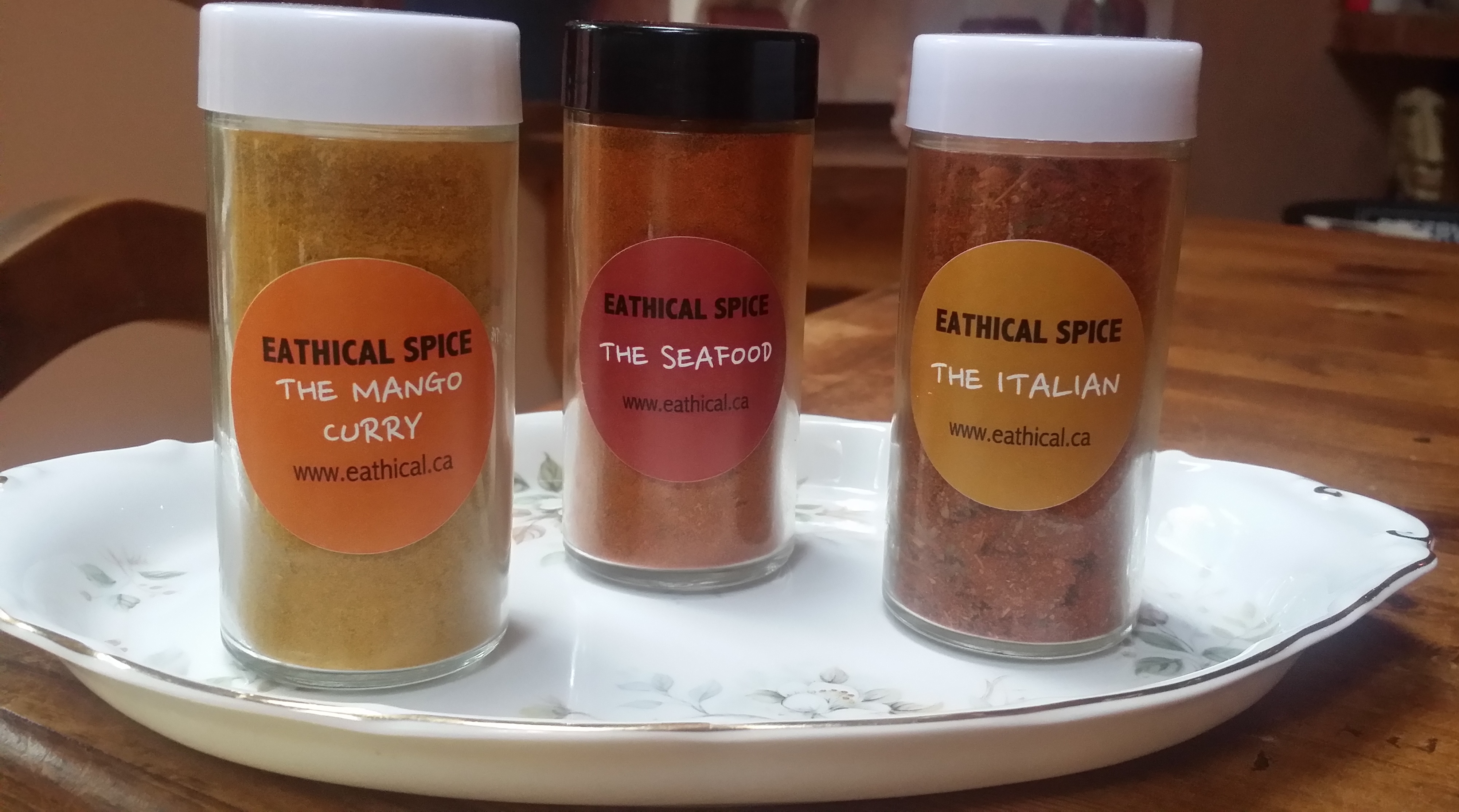 The EATHICAL series. It’s like spice mix for dummies. You can’t go wrong. Not only do they make your life easier and smell fantastic but they will improve the overall taste of your meal. You’re making Italian for dinner – grab don’t pinch The Italian. You’re making fish – go for The Seafood and so forth. They’re healthful wonderful spices. For instance The Mango Curry is made of turmeric, coriander, cumin, garam masala (a spice mix of its own which includes cardamon, black pepper, cinnamon, cloves & nutmeg), onion, garlic, amchur (made from dried unripe green mangoes) sea salt & chilies.