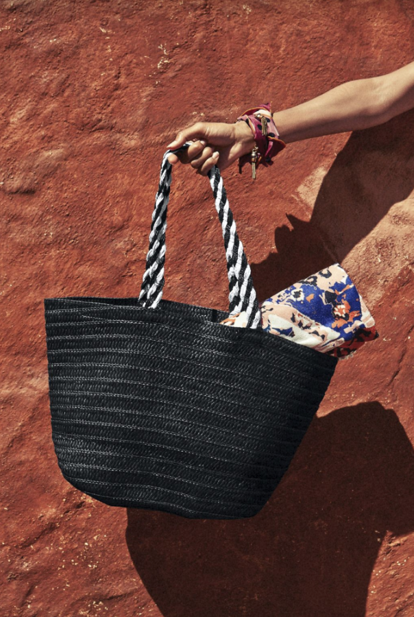 A chic straw bag. This black and white is timeless and roomy enough to carry all essentials. Very St. Tropez. Bonus: it’s also collapsable which makes it a perfect travel companion.